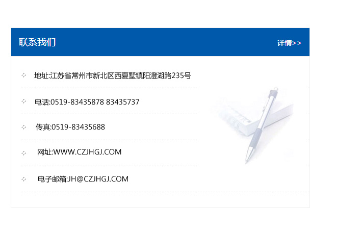 傳真:0519-83435688    郵編:213135    網址:WWW.czjhgj_com.sxthtc.com    電子郵箱:JH@czjhgj_com.sxthtc.com
